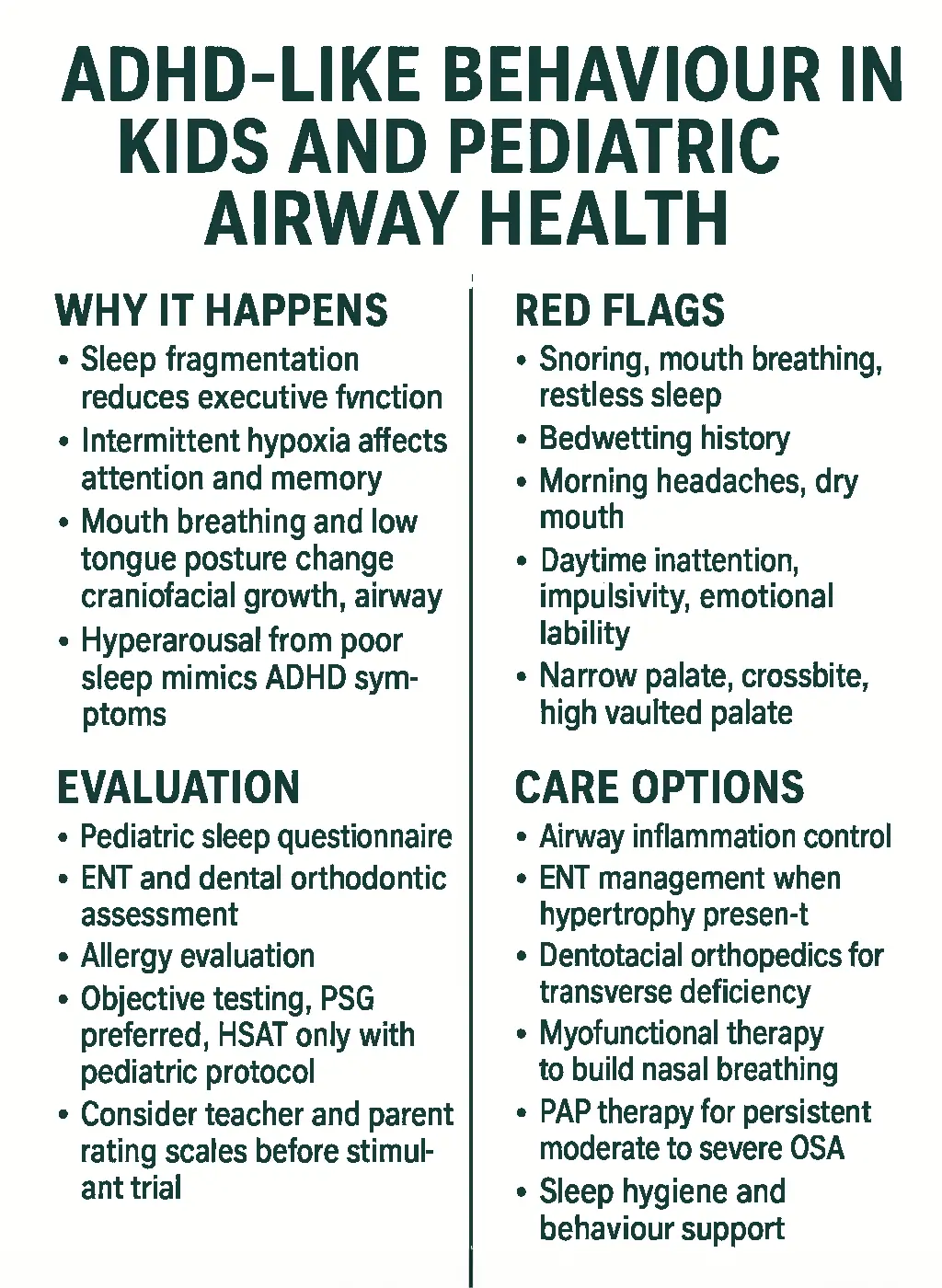 These signs may indicate that your child’s behavioral struggles stem from airway or sleep-related dysfunction rather than purely attention-based disorders: